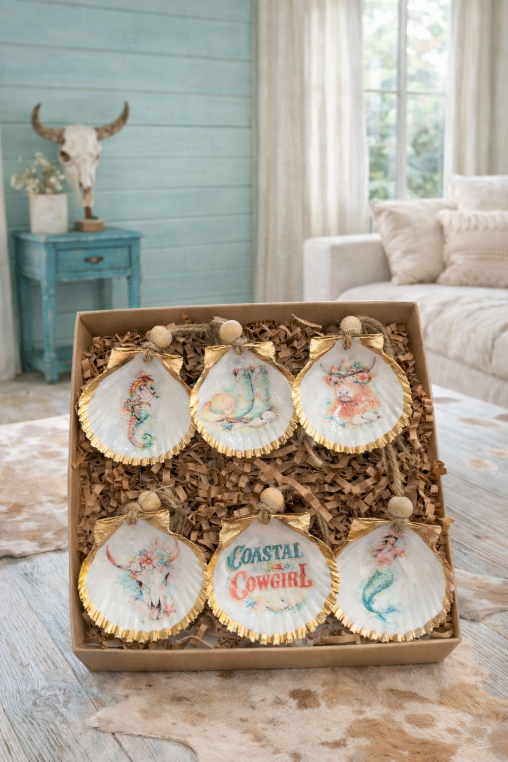 The Coastal Cowgirl Collection is where beach house style meets western charm — seashells, cowgirl boots, cactus blooms, and a little salty attitude.